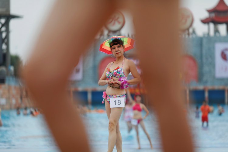 В аквапарке китайского города Тяньцзин 22 июля в третий раз состоялось мероприятие под названием "Грандбикини" – конкурс красоты для людей старше 55 лет. Бабушки и дедушки позировали перед членами жюри в бикини, традиционных нарядах, а также вечерних платьях и костюмах.