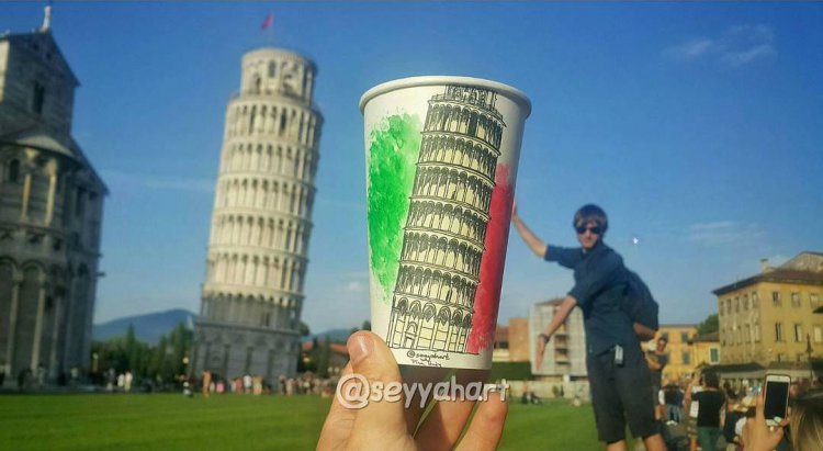 Берк Армаган – 22-летний художник-самоучка и путешественник из Турции, который использует бумажные кофейные стаканчики в качестве холста для своих картин. Обычно он заранее выбирает место, которое хочет нарисовать, но иногда вдохновение от улиц и зданий приходит внезапно. Он путешествует со стопкой белых стаканчиков и все зарисовки делает по дороге. Обычно он ездит автостопом и останавливается в кемпингах, потому время у него ограничено, а условия для работы с материалом несколько сложноваты, но Берк считает, что это тоже является важной частью опыта.