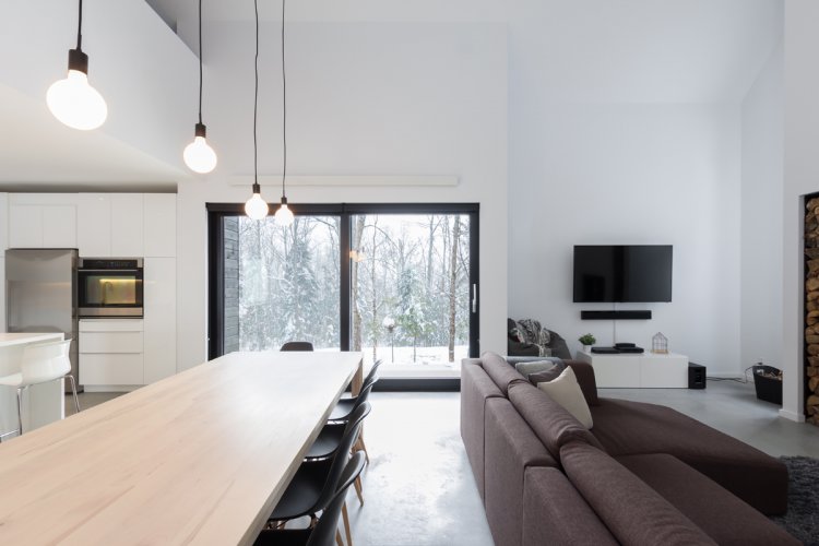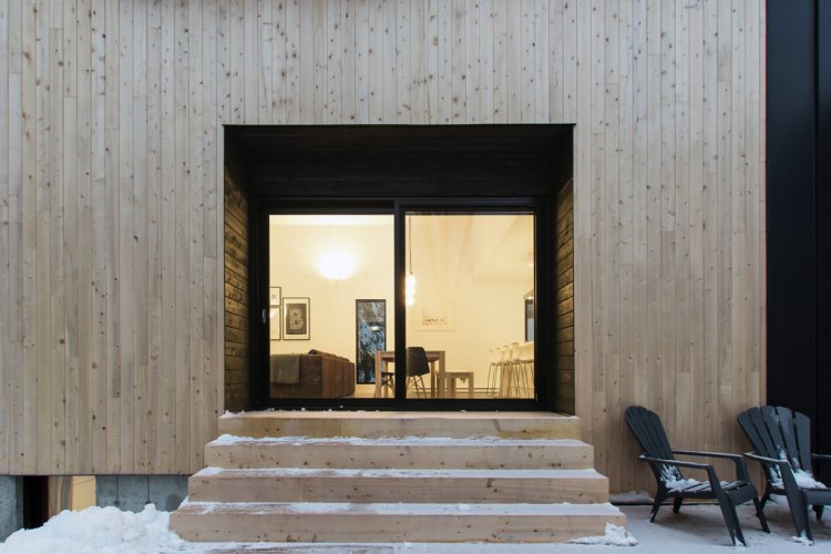 Канадская студия Cargo Architecture спроектировала просторный частный дом в г. Квебек. Дом расположен восточном регионе города в лестной местности Шарлеуа. Просторное жилище рассчитан на 14 человек, выполнен из металлических листов черно цвета, досок белого кедра и бетона.