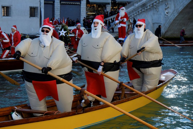 С приближением Нового года нередко можно встретить на городских улицах Дедов Морозов и Санта-Клаусов. Проходят различные увеселительные и благотворительные мероприятия с их участием. Представляю вашему вниманию подборку фотографий с Дедами Морозами, Санта-Клаусами и простыми людьми в праздничных костюмах из разных уголков нашей планеты.