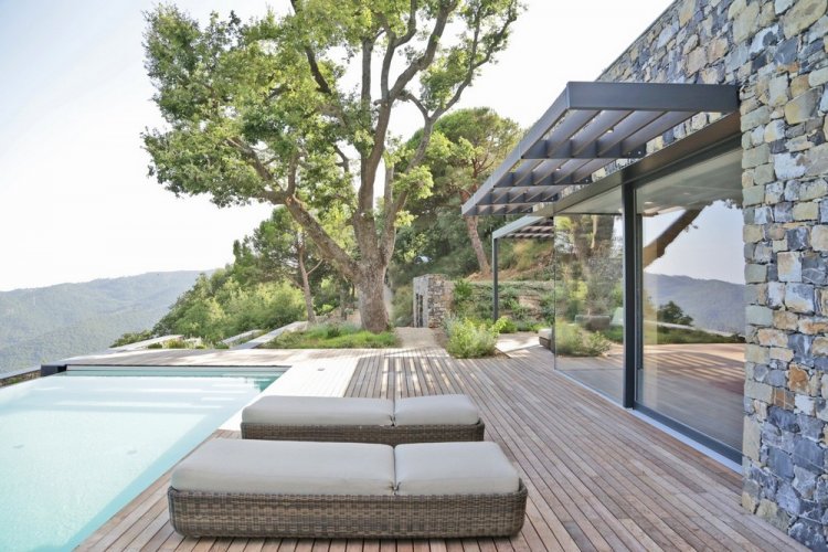 Студия Giordano Hadamik Architects представила проект роскошной виллы Nemes, расположенной в итальянском городе Империя. Резиденция площадью 210 квадратных метров построена на вершине холма с видом на залив. Её фасад выполнен из натурального камня и пронизан панорамными отверстиями, которые не только открывают окрестности, но и оптимизируют инсоляцию и теплоизоляцию здания.