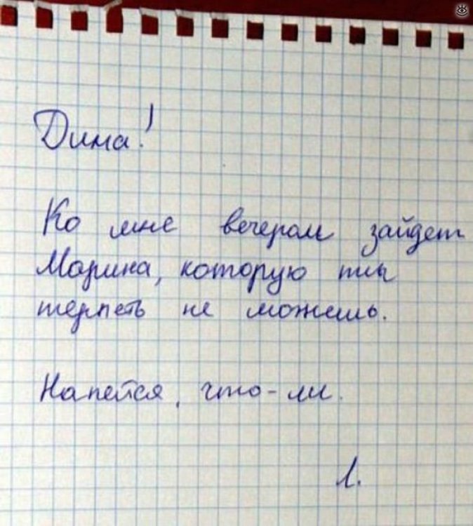 Ржачные мысли женщин (фото) 27-11-2018, 00:16 BigSisa Интересное 2 340 Женщины экспресивны, эмоциональны и по-своему остроумны их мысли и логику нелегко понять, поэтому читать их записки, оставленные мужу или детям - одно удовольствие.Ну посудите сами... Если Вам понравилось, поделитесь с друзьями в соцсетях: Предыдущая новость Следующая новость
