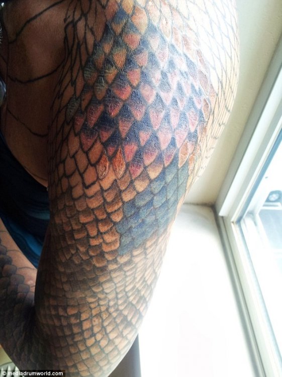 Как пишет издание, в ноябре 2012 года бывший работник банка Ричард Хернандез сменил имя на Ева Тиамат Медуза и объявил себя женщиной. Затем он перенес ряд болезненных косметических операций, в числе которых татуирование лица и имплантирование в лоб металлических пластин. Кроме того американец закрасил глазные яблоки зеленым цветом, а на свою грудь и руки нанес рисунок, напоминающий чешую. После этого житель Аризоны переделал свой нос и удалил уши. Все это было сделано ради того, чтобы добиться максимального сходства с драконом.