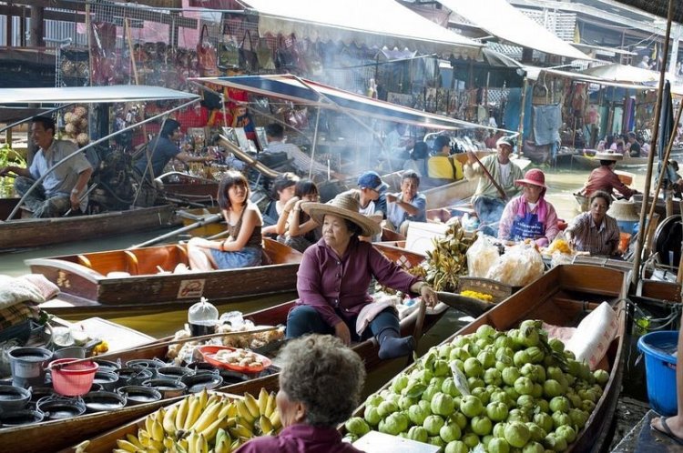 Самый известный плавучий рынок, и туристическая достопримечательность – рынок в Дамноенсадуак, расположенный в 100 км к юго-западу от Бангкока. Плавучий рынок переполнен сотнями продавцов и покупателями, плавающими в маленьких лодках и покупающих сельскохозяйственную продукцию и местные продукты питания. Рынок открывается рано утром и закрывается примерно за час до полудня.