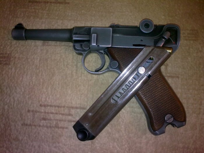 Этот 9-миллиметровый пистолет был разработан Георгом Люгером еще в 1900 году. Современные эксперты считают этот пистолет лучшим на момент Второй Мировой войны. Конструкция Люгера была очень надежная, он имел энергомичный дизайн, малую кучность стрельбы, высокую точность и скорострельность. Единственным существенным пороком этого оружия была невозможность закрыть конструкцией запирающие рычаги, в результате чего Люгер мог забиться грязью и перестать стрелять.