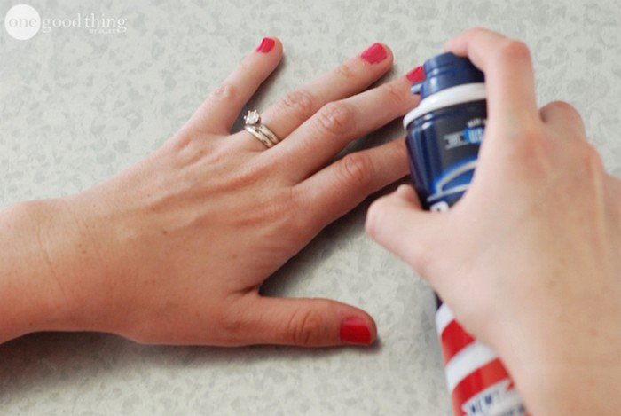 Часто, пытаясь навести красоту в спешке, девушки нечаянно размазывают лак повсюду (кроме самих ногтей). Небольшое количество пены для бритья решит эту проблему. Сбрызнете погрешности и немного потрите. Лак сотрётся с кожи, но останется «сидеть» на ногтях.