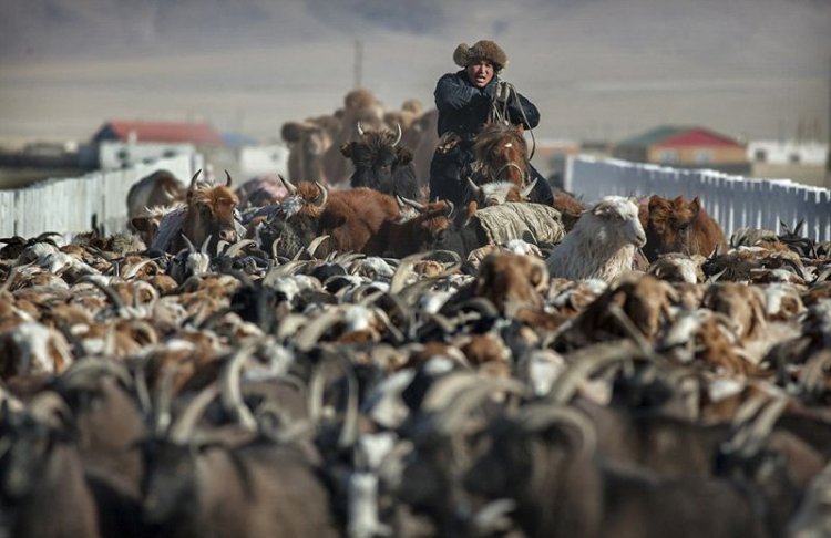 Фотограф Тимоти Аллен поучаствовал в ежегодном весеннем переселении казахской семьи, которая проходит в промежуток между февралем и апрелем. Семья вместе со своими животными проходит расстояние около 160 км через Алтай в отдаленном регионе на западе Монголи.