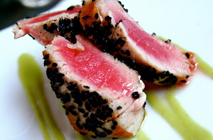 Если вы занимаетесь в тренажерном зале в вечернее время, то лучше, чем тунец, вам закуски перед сном просто не найти. Данный вид рыбы содержит много белка, который необходим для роста мышечной массы, и витамина В6, стимулирующего секрецию мелатонина и серотонина. Кроме тунца, данным витамином также богат палтус и лосось.