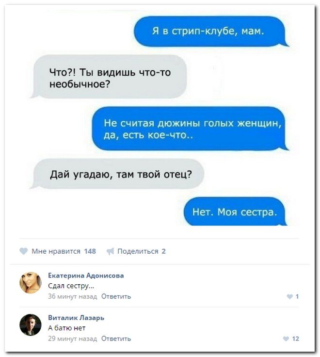 Смешные комментарии из социальных сетей 07.06.16 7-06-2016, 10:00 BigSisa Интересное 3 574 Очередная подборка смешных высказываний и комментариев из социальных сетей и других частей интернета. Если Вам понравилось, поделитесь с друзьями в соцсетях: Предыдущая новость Следующая новость