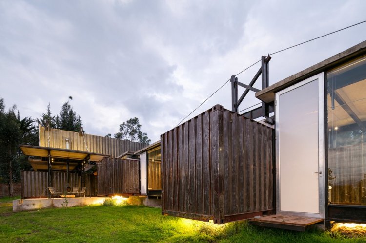 Хозяин дома увлечен механикой, автомобилями и мотоциклами. Ему нужна была простая, функциональная и разборная резиденция. Все конструктивные решения принципиально были выполнены видимыми. Для санузлов, гардеробных, кладовых и кухни использовали контейнеры в их оригинальном виде. Любые структурные модификации носят стратегический характер и внесены, чтобы наполнить резиденцию светом, улучшить циркуляцию воздуха и связать внутреннее и внешнее пространства. Все контейнеры базируются на бетонном основании, а металлические балки укрепляют конструкцию.