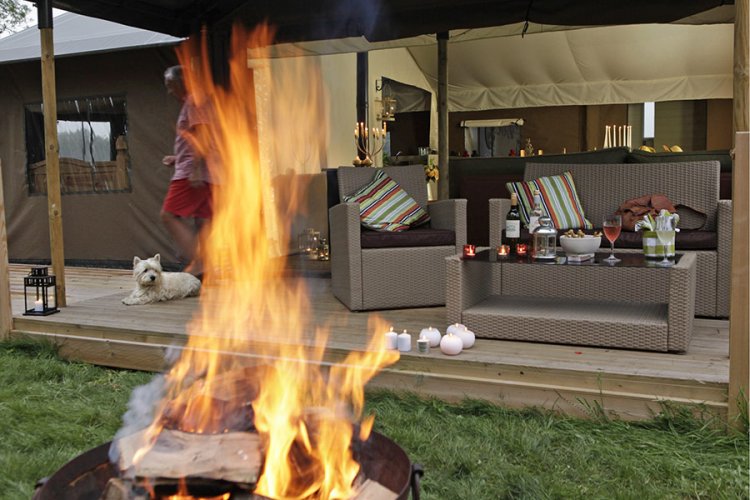 Среди живописных пейзажей графства Сомерсет (Великобритания) в местности Kittisford Barton фирма Lantern & Larks поставила огромную палатку для комфортабельного отдыха. По площади она напоминает целый дом, оборудованный как обычное жилище.