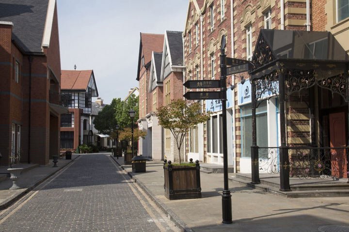 Не остался в стороне и Шанхай. Здесь выстроен квартал английского города Темза. Все как в Британии: небольшие дома, мощеная улица, готический собор, красные телефонные будки. Названия улиц тоже английские. Есть даже искусственная река Темза.