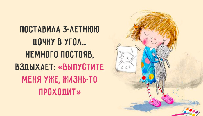 Мама одного ребёнка – наивна и неискушенна, будто новобранец в армии. Мама двух ребятенков – безмятежна и уверена, будто дембель. Мама трёх ребятенков — это СПЕЦНАЗ.«Мама, а зачем ты меня никуда не отдаёшь?» «А куда тебя надобно отдать?» Отвечает радостно: «Или замуж, или в хореография!»