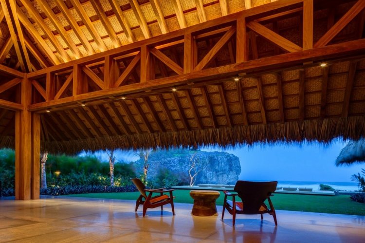 Студия Bernardi + Peschard arquitectura реализовала проект частного дома в штате Герреро, Мексика. В основу архитектурной концепции положен центральный объём, занимающий основную площадь резиденции. Под традиционной крышей высотою более 10 метров расположились гостиная и столовая, плавно переходящие в кухню, бар, комнату отдыха и главную спальню. В соседних павильонах спроектированы три дополнительные спальни с ванными комнатами, благодаря которым вилла напоминает пляжный бутик-отель. Терраса с бассейном находится прямо на берегу Тихого океана.