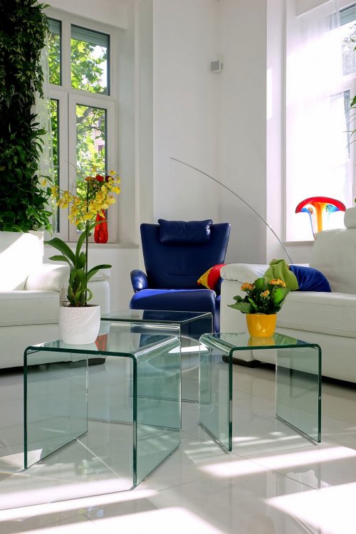 Проект оформления дизайна интерьера в частной резиденции под названием Halasz Utca, представила компания Margeza. Расположенный в Будапеште, Венгрия, он напрочь разбивает стереотипные представления о жизни венгров. Фоном для дизайна интерьера стал белый цвет. На фоне белого заметно выделяются множество ярких, цветных предметов мебели и декора. Колонны из живых растений украшают зону гостиной, а изготовленная под заказ мебель задает нужный тон. Картина по настоящему оживает вечером, когда включается искусственное освещение, играющее еще и декоративную роль.