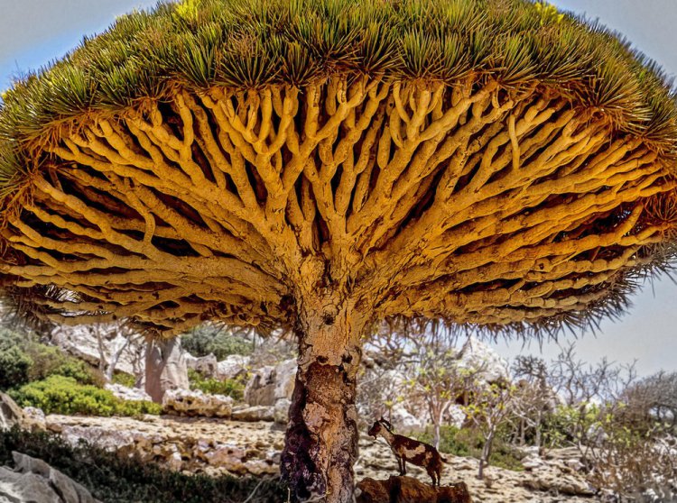 Силуэт драцены драконовой напоминает гигантский гриб. Толстые ветки разветвляются снова и снова и завершаются плотным пучком кожистых листьев с острейшими краями. По индийской легенде, первые драцены («самки дракона») выросли там, где смешалась кровь слона и дракона. Старый и сильный слон упал на кровожадного дракона, нападавшего на слонов, и раздавил его. Сейчас драконовое дерево можно встретить на Канарах, Мадейре, в Кабо-Верде и на западе Марокко.
