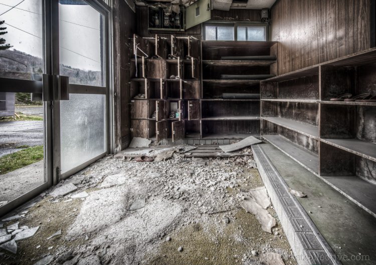 Эти жуткие кадры, выглядящие как буд-то декорации к фильму ужасов, сделал австралийский фотограф Бретт Патман (Brett Patman) в Юбари, Хоккайдо, Япония. Он шел вниз по улочке недалеко от центра города, чтобы сфотографировать старые вывески кинотеатра, когда “жуткое” трехэтажное здание привлекло его внимание. В своем блоге фотограф написал: "Я сделал пару снимков фасада, потом заметил, что входная дверь была приоткрыта, искушение взяло верх, и я заглянул внутрь". Вот что он там увидел: