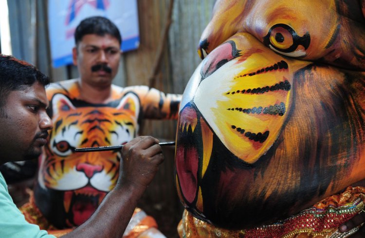 17 сентября в индийском городе Триссур прошел красочный “Pulikali”, также известный как танец тигра. Это мероприятие проводится каждый год в городе в рамках фестиваля “Onam”, праздника урожая, означающего Новый год в этом регионе южной Индии. Танцоры в масках и разукрашенные как тигры, производят танцевальные движения, символизирующие связь человека с природой.