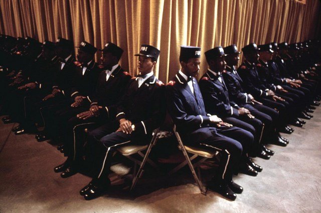 «Плод Ислама», специальная группа телохранителей лидера мусульман Элайджи Мухаммада, дежурит во время его выступления с речью в День Спасителя в Чикаго, март 1974 года.