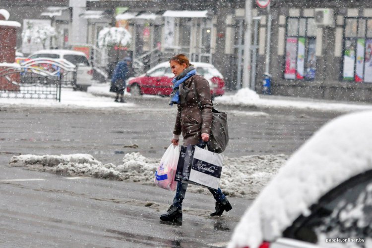 Зима пришла неожиданно: фоторепортаж о снегопаде в Гомеле