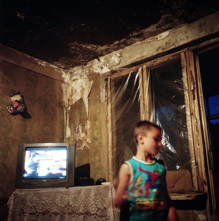 Девочка из семьи, бежавшей из Талыша во время апрельского конфликта, в доме своего дяди в Шуши, 2016 год.