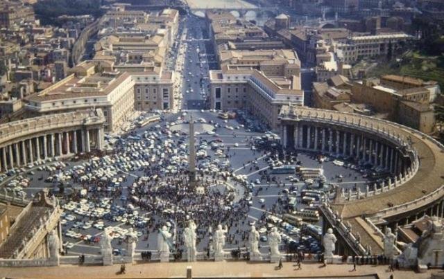 Полвека назад площадь Св. Петра в Риме, как и все исторические площади Европы, была всего лишь большой автостоянкой (1960-61 гг.)