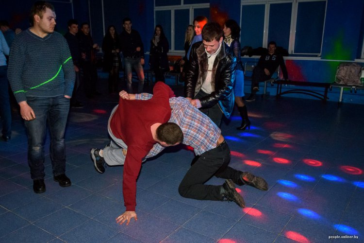 «Галактика» — место популярное лишь в том случае, если райисполком дает добро крутить музыку до четырех утра. Это, понятное дело, случается не каждые выходные — только по большим праздникам. Такой произошел в Островце на этих выходных: отшумели «Дожинки». По этому поводу было решено как следует погулять — дискотеку продлили, сделали еще несколько поблажек, о которых говорить не принято, а за вход установили таксу в 7 рублей ( около 233 рос. руб).