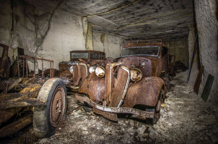 Коллекцию автомобилей времен Второй Мировой Войны недавно обнаружили в сельской местности во Франции. Автомобили спрятали в каменоломне, что бы они не достались немецкой армии. После войны про авто благополучно забыли и они до сих пор гниют под землей. Коллекцию автомобилей обнаружил бельгийский учитель и городской исследователь Мишель Винсент (Vincent Michel), он сказал, что почувствовал себя путешественником во времени.