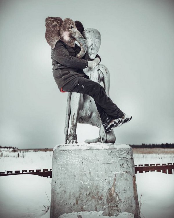 В инстраграме набирает популярность пользователь @trunkdrunk. «Я даже не прошу о счастье, просто немного меньше боли», — написано по-английски в его профиле, однако фото, которые публикует человек с головой слона — это и есть сплошная боль. Пользователь, у которого на нынешний момент 14 тысяч подписчиков, фотографируется в самых печальных уголках России, и глядя на эти фото, действительно хочется тихонько заплакать от жалости к себе и своей несчастной родине.
