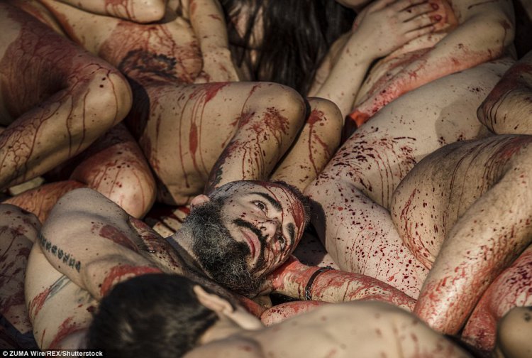 Как сообщается, обнаженные участники перформанса разделись и легли на землю в центре Барселоны, предварительно облив свое тело поддельной кровью. По словам зоозащитников, из тела символизировали туши убитых ради меха животных.