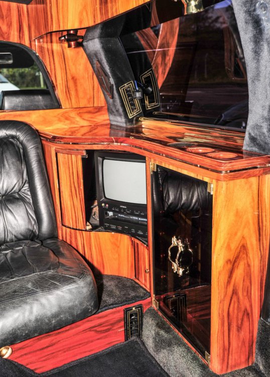 5.0 литровый лимузин Кадиллак 1988 года считается первым подобным автомобилем Дональда Трампа. Авто специальной "Золотой серии" было разработано индивидуально для него. Это настоящий офис на колесах, в салоне есть: факс, телевизор, видеомагнитофон, бумагорезка, письменный стол, встроенный сейф, мини-бар и многое другое. Говорят, Трамп хотел заказать еще 50 аналогичных лимузинов, но сделка не состоялась. Сейчас авто принадлежит британской компании, он находится в городе Глостер.