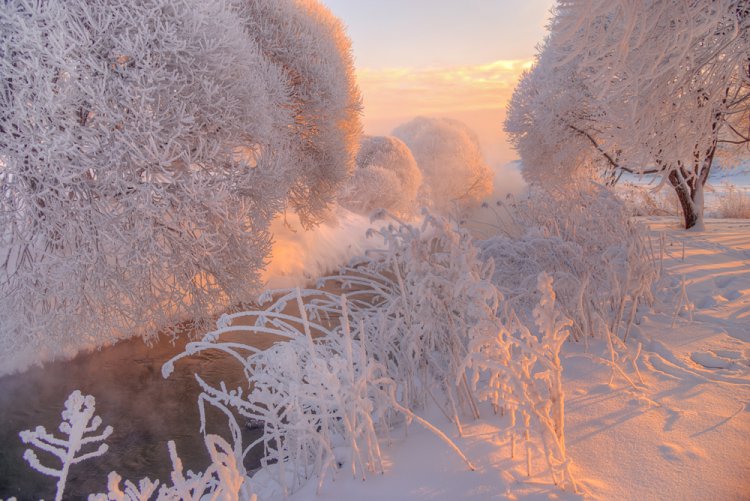 Прежде всего у фотографа должны быть специальная одежда и обувь. Выходить снимать в мороз в обычных ботинках (на тонкой подошве) неразумно и даже опасно для здоровья. В отличие от летних рассветов, когда съемка заканчивается, как правило, с восходом солнца, зимнее утро дает возможность снимать гораздо более длительное время. В Санкт-Петербурге зимой солнце высоко не поднимается, и с таким светом можно снимать чуть ли не до 12 часов. А затем, уже в 15 часов, начинается вечерняя съемка. Так можно целый день провести на морозе. И без удобной и качественной одежды не обойтись. Обязательно нужно иметь с собой запасной аккумулятор, чтобы в какой-то момент не оказаться зрителем. Камеру, придя в теплое помещение, лучше не доставать из сумки (рюкзака) в течение часа. Иначе может образоваться конденсат, который будет для аппаратуры пострашнее, чем низкая температура.