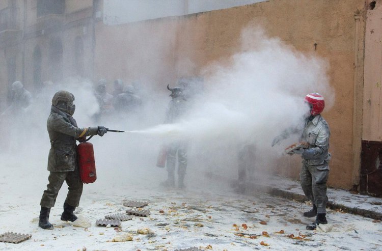 28 декабря в Юго-Восточном испанском городке Иби прошел ежегодный 200-летний фестиваль "Els Enfarinats". Участники в военной форме устраивают бои с помощью яиц, муки и петард. Фестиваль проходит в честь библейского избиения младенцев царем Иродом, который когда-то жил в городе Иби. В течении дня участники фестиваля "свергают власть", затем "выбирают новую" и издают "новые законы". Потом отправляются искать граждан, которые не заплатили налоги "новой власти", несогласных платить забрасывают мукой и яйцами. К полудню формируется группа, которой надоела "новая власть", они пытаются ее свергнуть с помощью яиц и муки. Заканчивается битва перемирием с песнями, танцами и сбором средств на благотворительность.