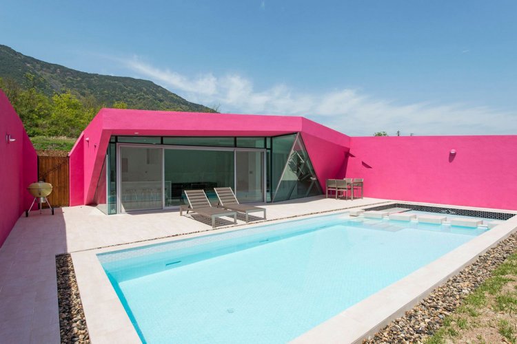 Архитекторы студии Moon Hoon славятся нестандартными проектами. В этот раз они снова решили удивить очередного заказчика. Относительно недавно было завершено строительство четырех вилл (Miryang pool villa), расположенных в окрестностях портового города Ульсан (Южная Корея). Дома выполнены в ярко-розовом цвете.