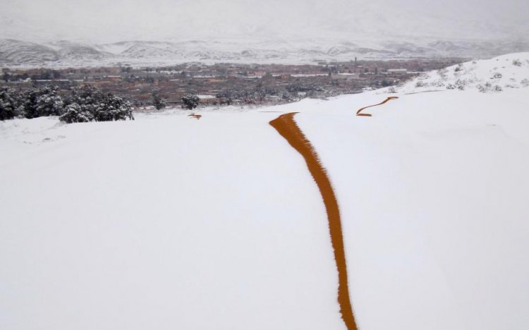 Впервые за последние 37 лет снег в пустыне Сахара выпал еще перед Рождеством. 20 января в этом регионе начался настоящий снегопад. Количеству снега в пустыне могут позавидовать некоторые горнолыжные курорты, в городе Айн-Сефра снегопад вызвал хаос. Снегу похоже рады только дети, они лепят снеговиков и катаются на санках. Сегодня Сахара очень сухая, но ожидается, что через 15000 лет она снова станет зеленой.