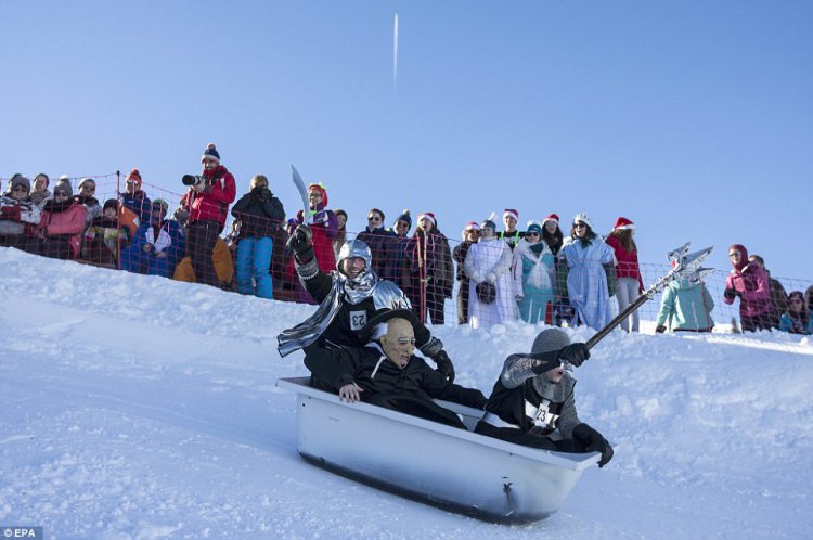 21 января на горнолыжном склоне в Альпийском городке Штоос в Швейцарии состоялись пятые ежегодные гонки на ванных. Трое или более человек в веселых костюмах должны максимально быстро спуститься с горки на ванной, что бы одержать победу в соревновании. Ванну с собой тащить для конкурса не нужно, об этом позаботились организаторы. Идея этого конкурса пришла совершенно случайно, однажды сантехник доставлял ванну клиенту, она выскользнула и спустилась со склона, так и придумали эти веселые соревнования.