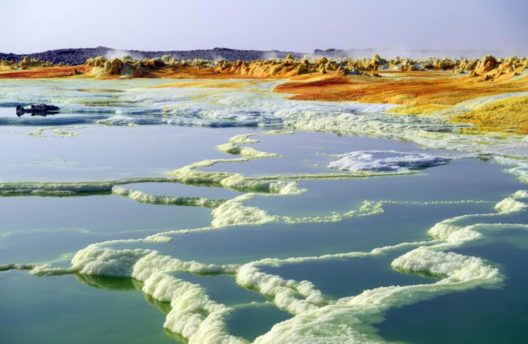 Данакильская или Афарская впадина (Danakil Depression) в Эфиопии находится на 100 метров ниже уровня моря и является одним из самых горячих и самых негостеприимных мест на Земле. Несмотря на эти тяжелые условия, эфиопы продолжают вековые традиции добычи соли из земли вручную при температуре в среднем 34.5 градусов по Цельсию, которая поднимается до более чем 50 градусов. Фотограф Carl Court побывал в этом горячем месте 22-23 января и сделал несколько снимков.