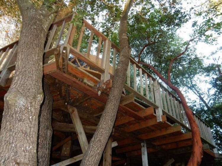 Гостям логова приходится подниматься по лестнице, чтобы добраться до кровати.