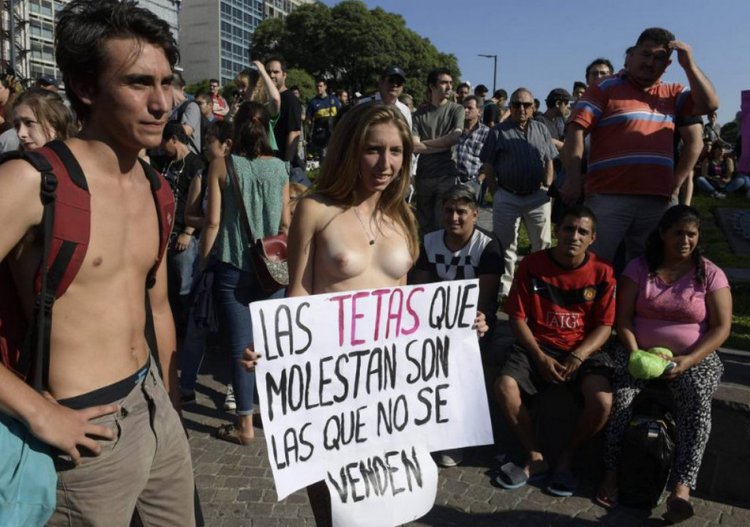 «Когда женщины говорят о гендерном насилии, их не слушают, но если они обнажают грудь — сразу приезжают полицейские, — рассказала одна из участниц демонстрации. — Это позор». Аналогичной позиции придерживаются другие активистки, вышедшие на центральную площадь Буэнос-Айреса под лозунгом «Грудь — не преступление». Судя по фотографиям, акция прошла весело: в демонстрации приняли участие и юные девушки, и женщины в возрасте, многие из них разрисовали себя краской и принесли плакаты. Как сообщает The Guardian, акция привлекла немало мужчин, однако демонстрантки настойчиво прогоняли зевак.