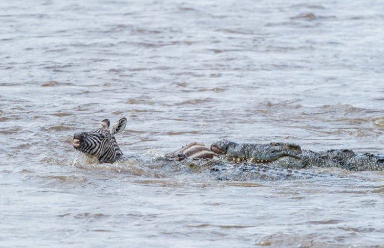 Эти драматические кадры снял 64-летний фотограф Инго Герлах (Ingo Gerlach) во время поездки в Африку, чтобы увидеть ежегодное великое переселение зебр и гну. На этот раз не повезло жеребенку зебры в Национальном заповеднике Масаи Мара на юго-западе Кении. Жеребенок пересекал реку, но попал в пасть к двум голодным крокодилам, у него не было шансов на спасение.