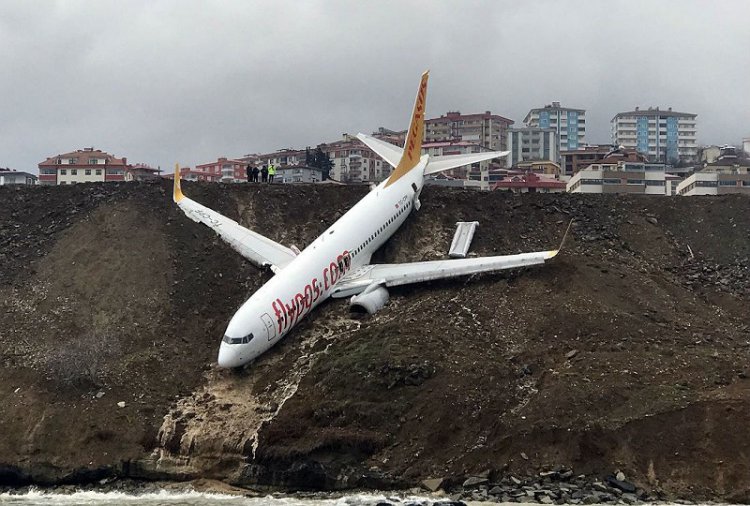 14 января в турецком городе Трабзоне «Боинг-737» компании Pegasus Airlines выкатился за пределы взлетно-посадочной полосы и завис в нескольких десятках метров от моря.