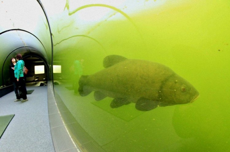 В Чехии под озером есть туннель из стекла, находится он на глубине около 3 метров. Уникальная конструкция сооружения создает впечатление, что вы попали внутрь водоема и гуляете там по дну!