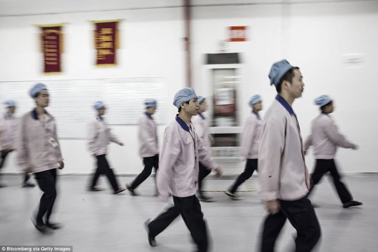 Построившись с военной точностью, сотни сотрудников ожидают, чтобы приступить к сборке iPhone на одном из самых закрытых заводов производственной линии компании Apple.