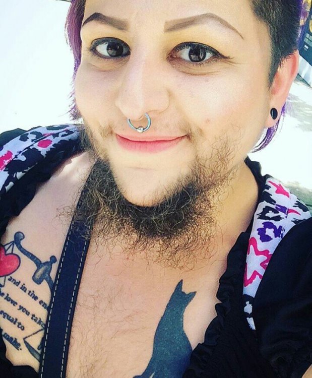 Это чудо из Сиэтла называет себя "Медвежонком" и является женщиной от рождения. Во что сложно поверить, учитывая наличие бороды. Эта дамочка — художница, музыкант и исполнительница бурлеска. Но дела идут худо. Поэтому она просит денег у всех пользователей сети и обещает щедрые вознаграждения — селфи, песенки и беседы прочую лабуду — за пару пожертвованных баксов.