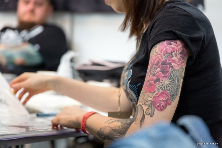 «Народ сечет стайл. Теперь все стараются „забиваться“ грамотно. Складывается какой-то смысл». Отечественная нательная живопись пока не достигла оборотов иностранной, но, по заверениям знающих людей, находится на единственно верном пути. 11 июня в Минске открылась выставка достижений народного тату-хозяйства. Корреспонденты Onliner.by побывали на ней, чтобы увидеть стаю сов на человечьих предплечьях и расписанные, как потолок Сикстинской капеллы, широкие спины, а заодно прочитать стихи на «забитых» бедрах.