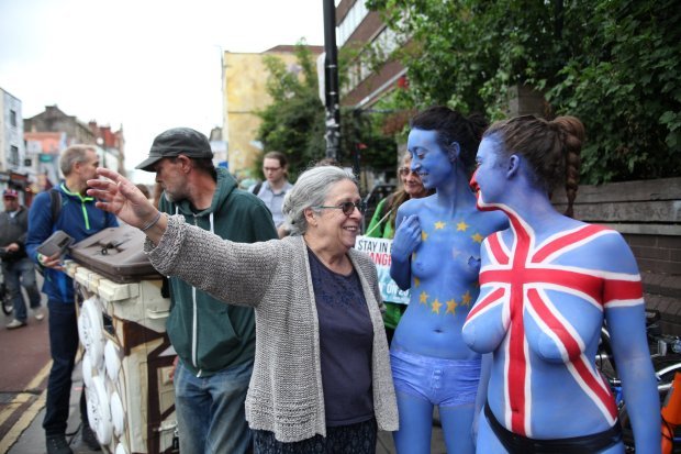 Сторонницы интеграции прошлись по оживленным улицам Бристоля с обнаженной грудью, выкрасив свои тела в цвета флагов Великобритании и Евросоюза. Данная акция была задумана, чтобы переубедить британцев выходить из Евросоюза.