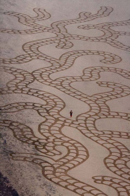 Не поверите, но художника совсем не волнует тот факт, что его творения очень скоро смоет морской волной и они исчезнут, будто бы их и не было. Напротив, создатель картин на песке считает это нормальным, поскольку ничто в нашем мире не вечно.