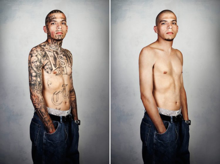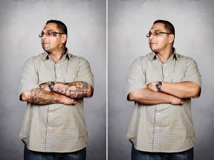 Фотограф Стивен Бартон из Лос-Анджелеса обработал портреты бывших членов уличных банд так, чтобы сравнить их лица с татуировками и без них.