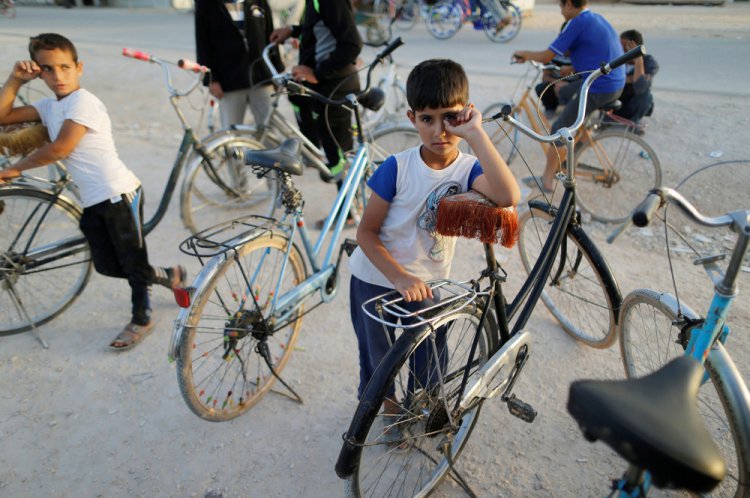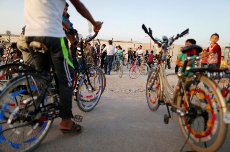 Лагерь беженцев Заатари (Zaatari) находится недалеко от границы Сирии в Мафраке, Иордания. Это один из наиболее быстро растущих лагерей беженцев на Ближнем Востоке. Посреди пустыни возник разрастающийся город трущоб, с населением до 125 000 человек в год. В лагере есть рынки и магазины, предлагающие все: от мороженого до пиццы, от продажи мобильных телефонов до аренды свадебного платья. Люди из Сирии приезжают на велосипедах, что бы посетить местные рынки и магазины.