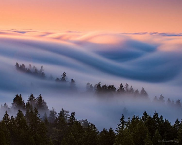 В течение летних месяцев туман настолько интенсивный, что фотографировать в районе залива (в том числе возле моста Золотые Ворота) невозможно. Береговая линия в это время полностью скрыта в тумане, поэтому снимать можно лишь с высокой точки, говорит Ник. Одно из лучших мест для этой цели – гора Тамалпаис (Tamalpais). Взобравшись на неё, чувствуешь себя на вершине мира, когда смотришь на плывущий внизу туман, напоминающий океанские волны.